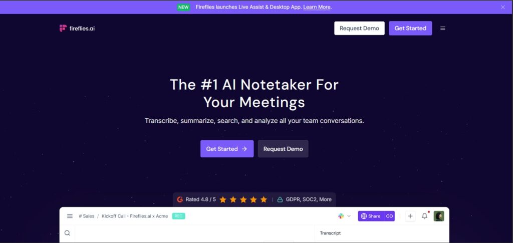 3. Fireflies.ai: For capturing action items and decisions automatically