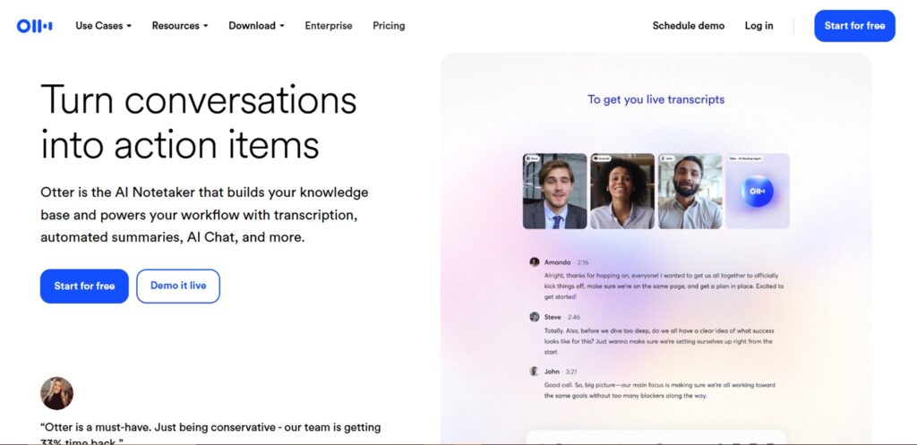 2. Otter: For real-time meeting notes and fast team alignment