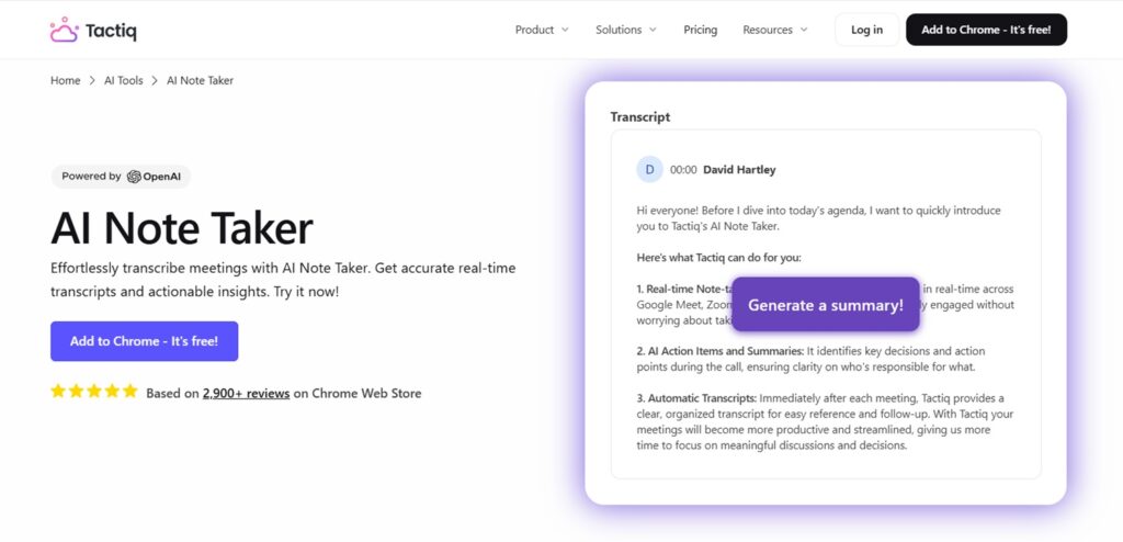 8. Tactiq: For simple, affordable meeting notes inside existing tools